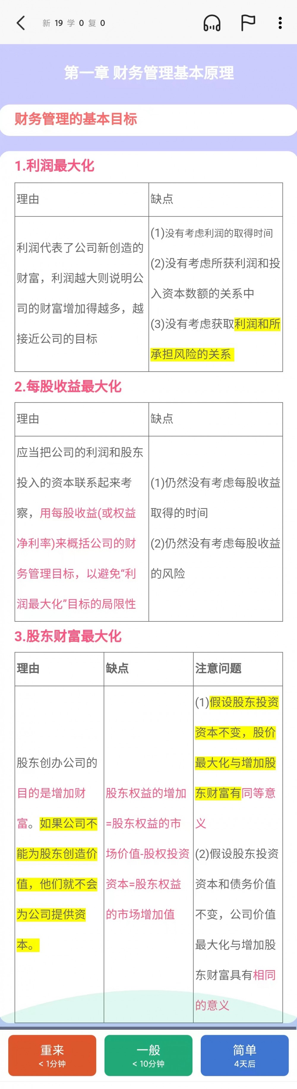 22CPA财管核心考点笔记,重点颜色标示,多以表格形式呈现,排版清晰