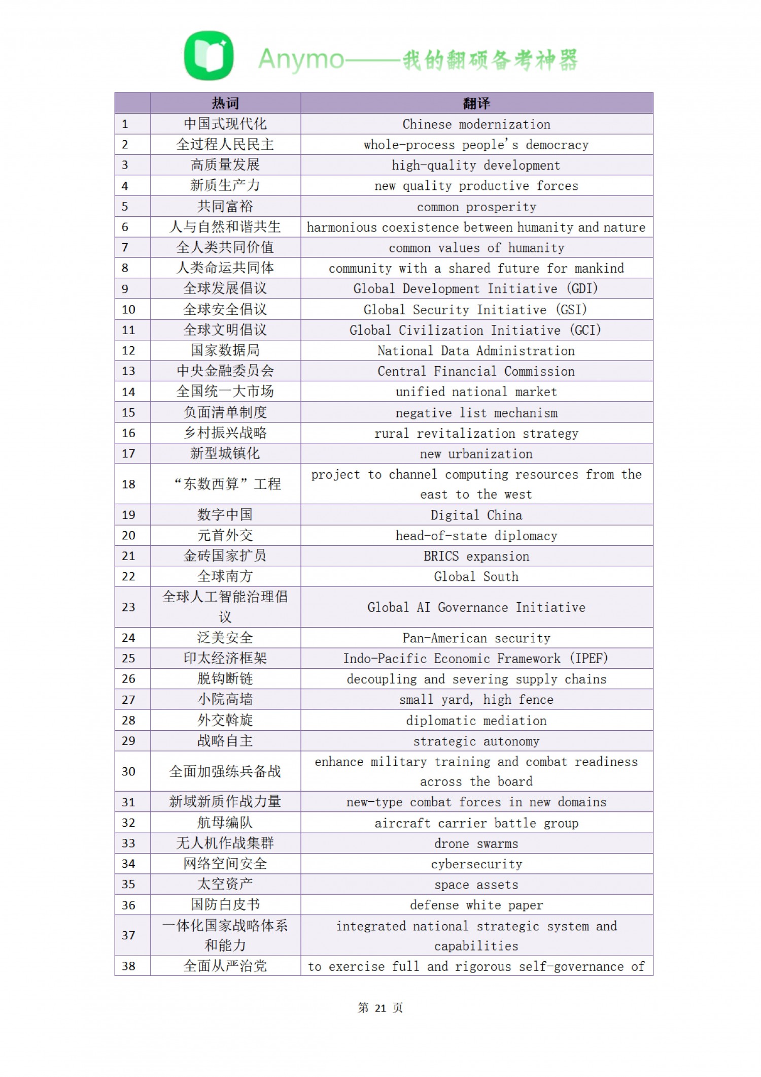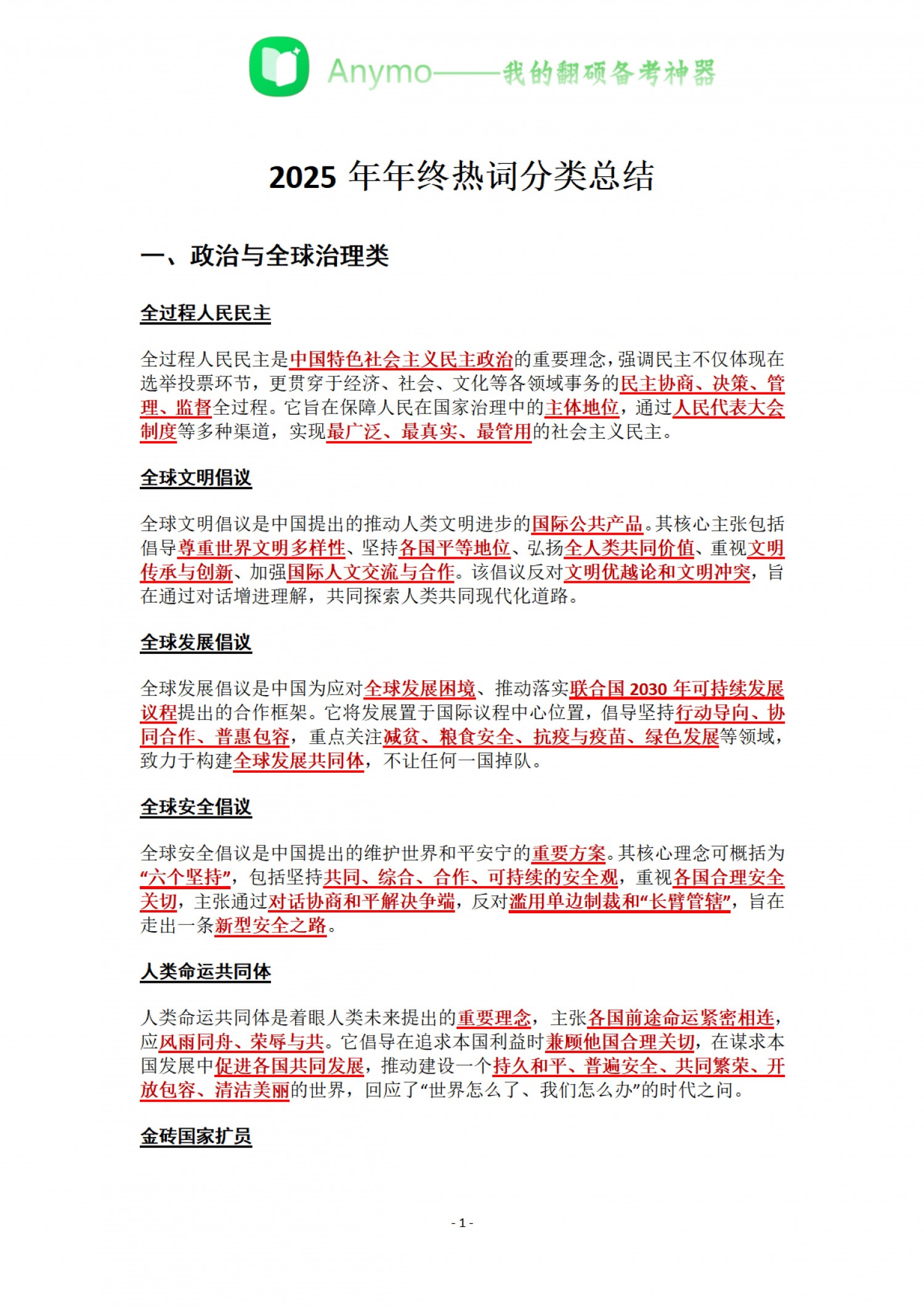 词条翻译+百科知识冲刺资料·年终热词精选