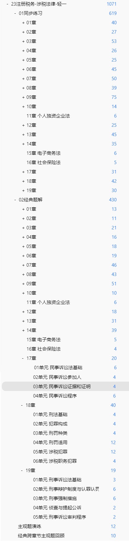 涉税法律,qingyi题库,包括:经典题解、同步练习、主观题演练、经典跨章节主观题,共计1070张卡片