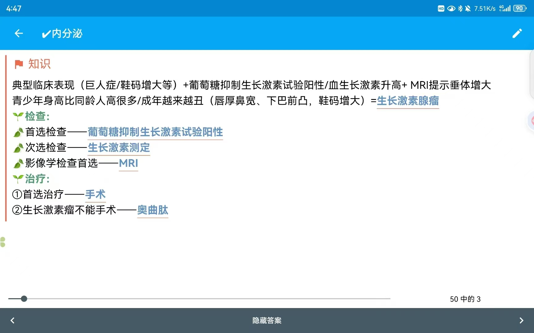 内科内分泌疾病部分,医学生期末考自用,在重要疾病的检查和治疗挖空记忆