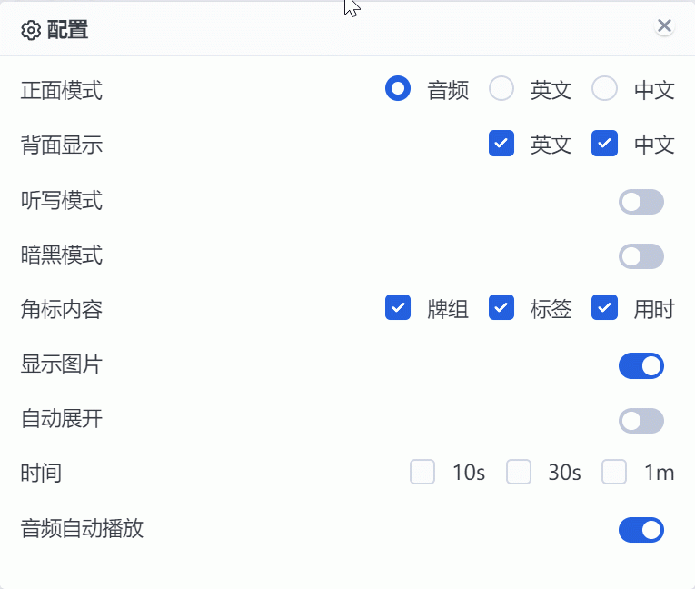 多模式可自由搭配设置正面显示 音频/中文/英文/听写,